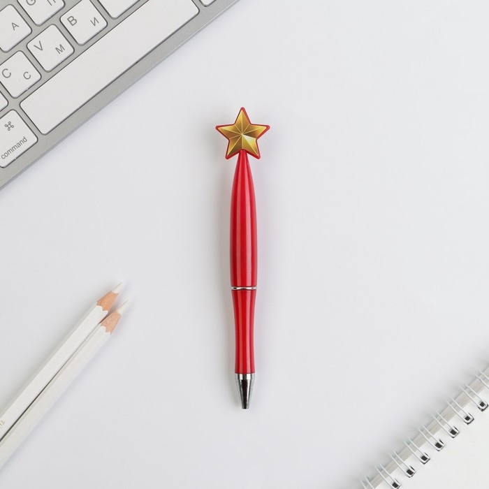 Ручка шариковая синяя паста «Самому храброму», пластик, со звездой на подложке-погон