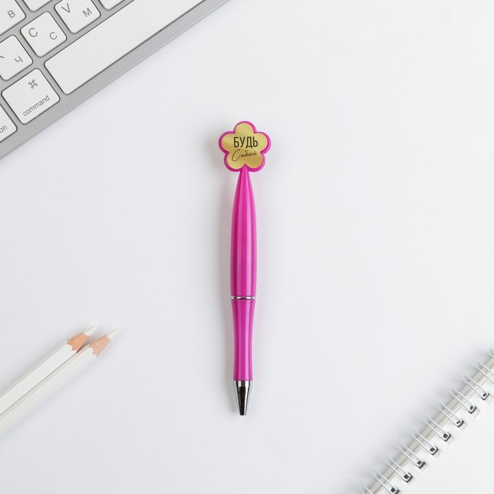 Ручка шариковая синяя паста, пластиковая с цветком «Ты совершенна» на подложке-ваза