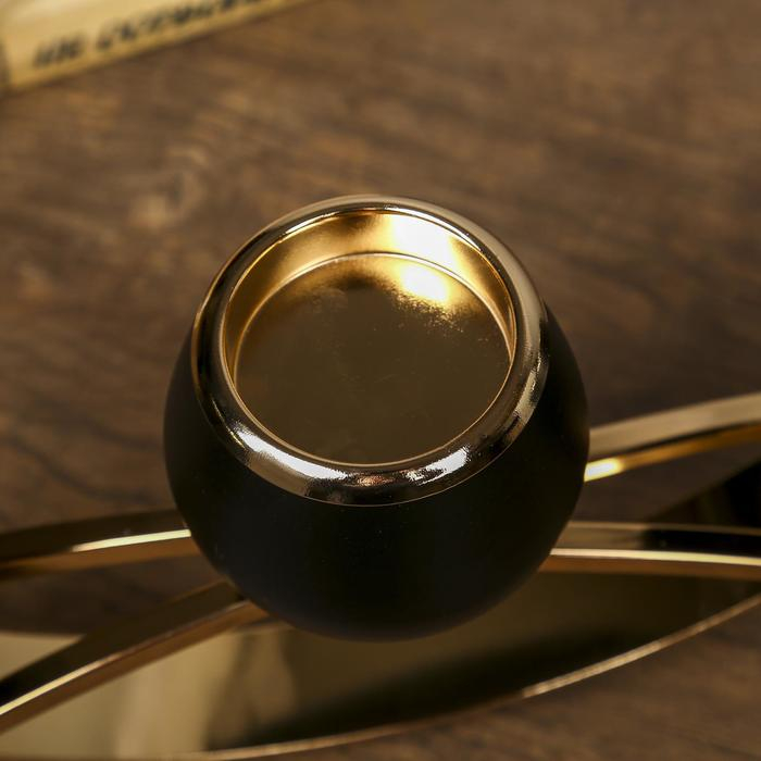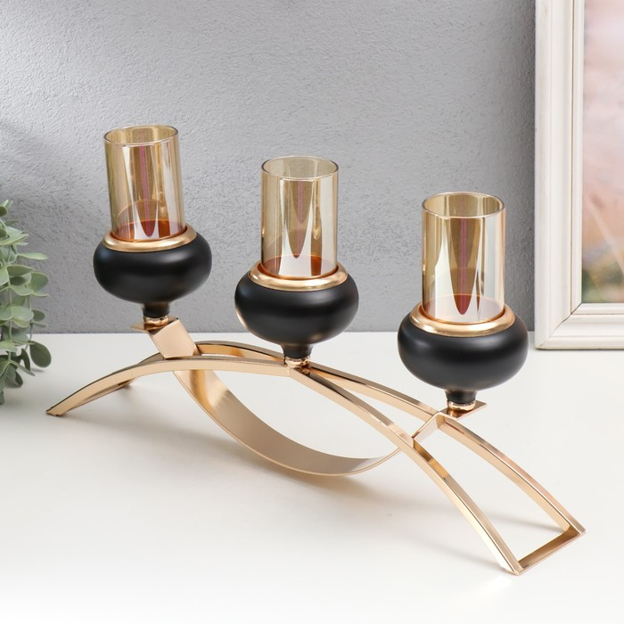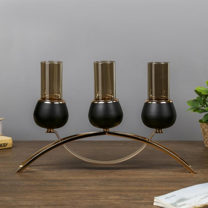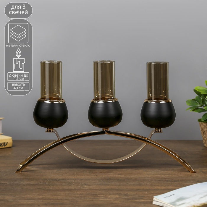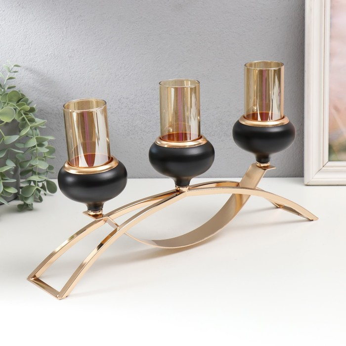 Подсвечник металл, стекло на 3 свечи "Тёмный рыцарь" чёрный матовый с золотом 40х25х12 см