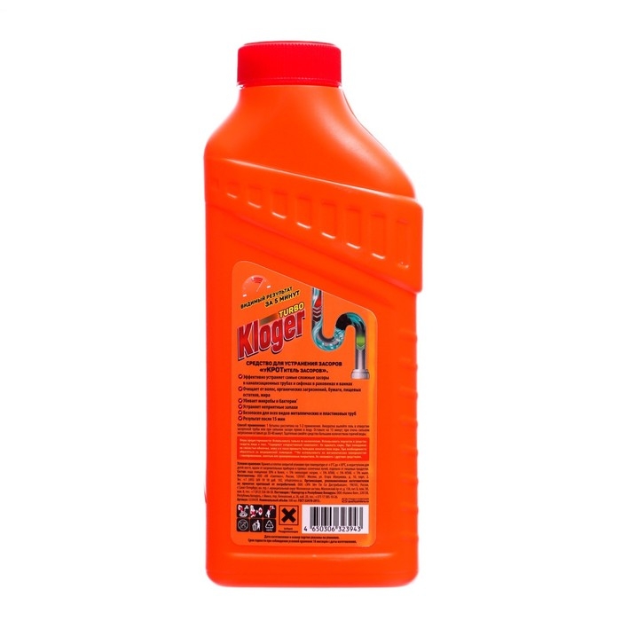 Чистящее средство Kloger, гель для устранения засоров в трубах 500 мл
