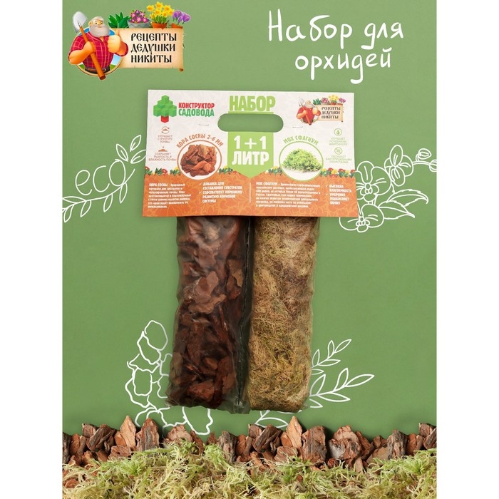 Набор для орхидей Кора сосны 2-6 фр + Мох сфагнум "Рецепты Дедушки Никиты" 3+3 л.