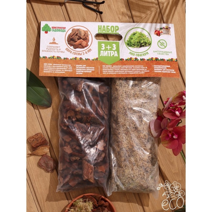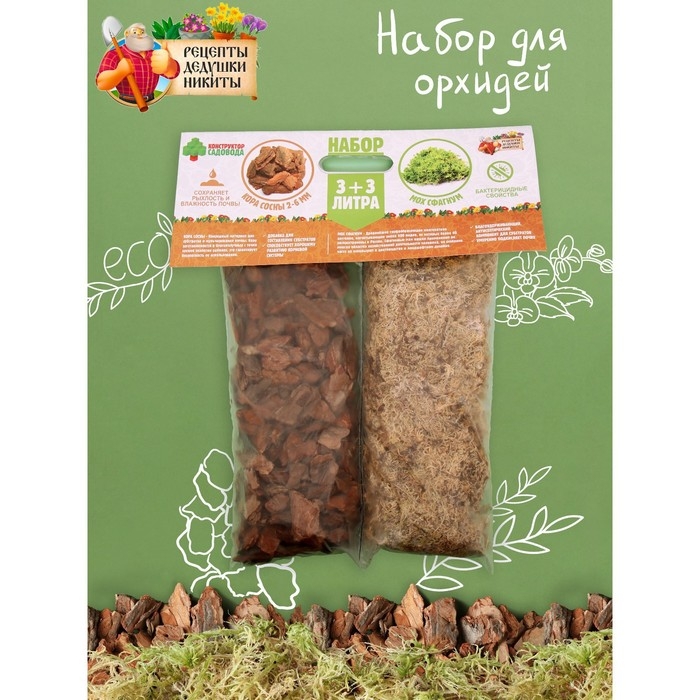 Набор для орхидей Кора сосны 2-6 фр + Мох сфагнум "Рецепты Дедушки Никиты" 3+3 л.