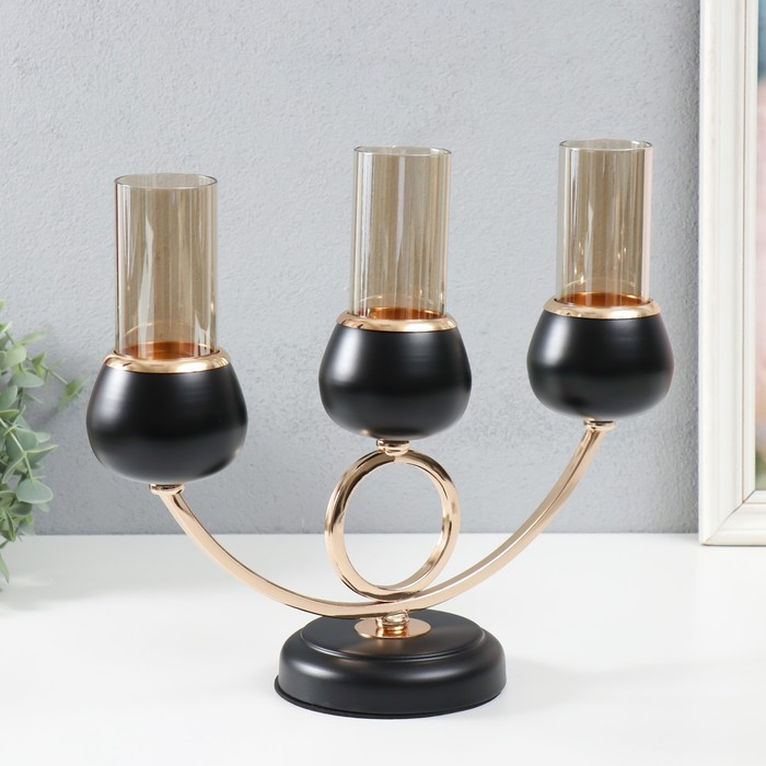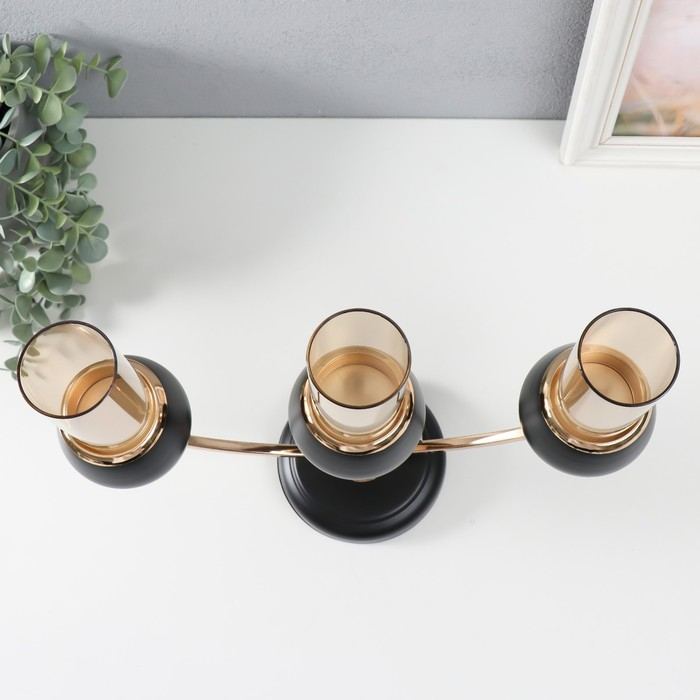 Подсвечник металл на 3 свечи "Тёмный рыцарь" чёрный матовый с золотом 36х24х12 см
