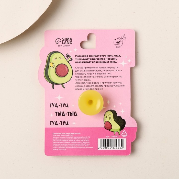 Массажер спонж для умывания, на подложке «Аквопати», 6,5 х 5 см