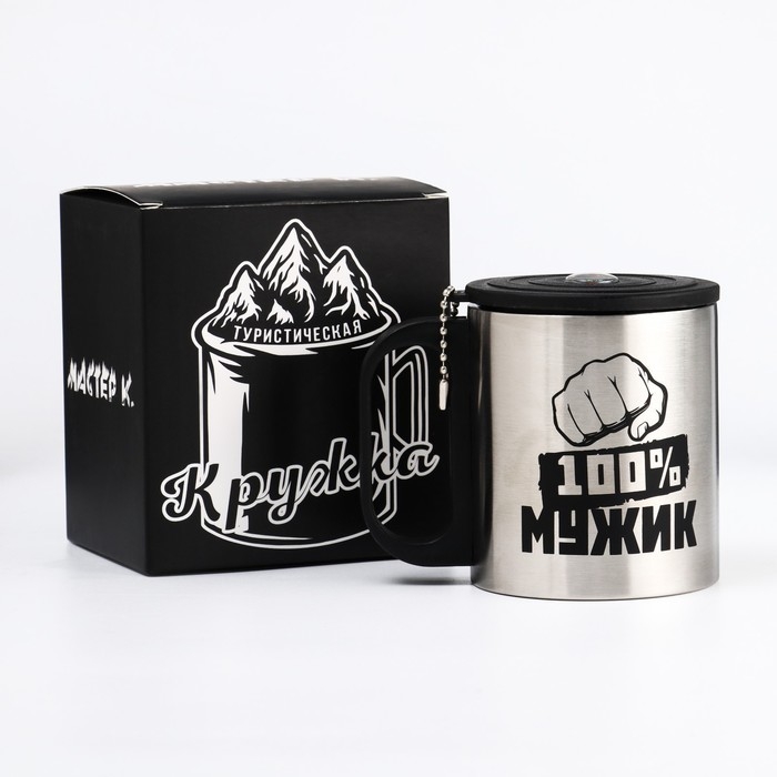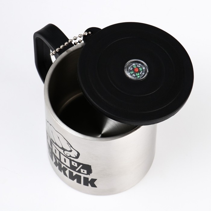 Термокружка, 180 мл, Туризм "Мастер К.100 % Мужик", сохраняет тепло 2 ч, компас