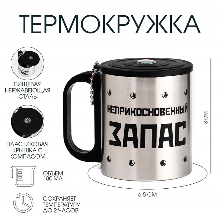 Термокружка, 180 мл, Туризм "Неприкосновенный запас", сохраняет тепло 2 ч, компас