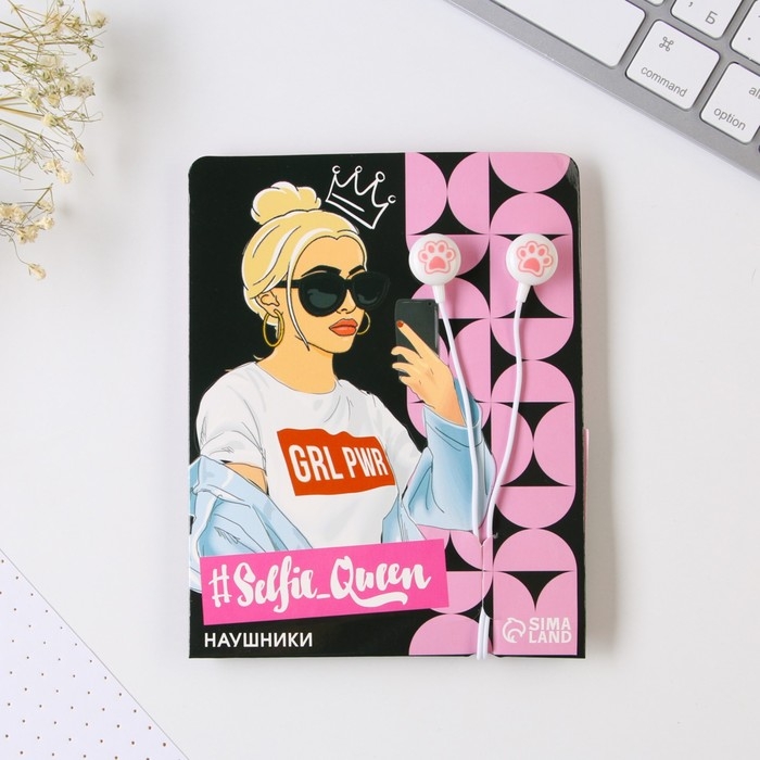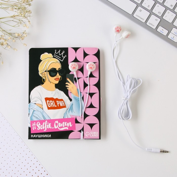 Вакуумные наушники с яркими дополнительными элементами на открытке будут радовать необычным дизайном и хорошим качеством звука.
