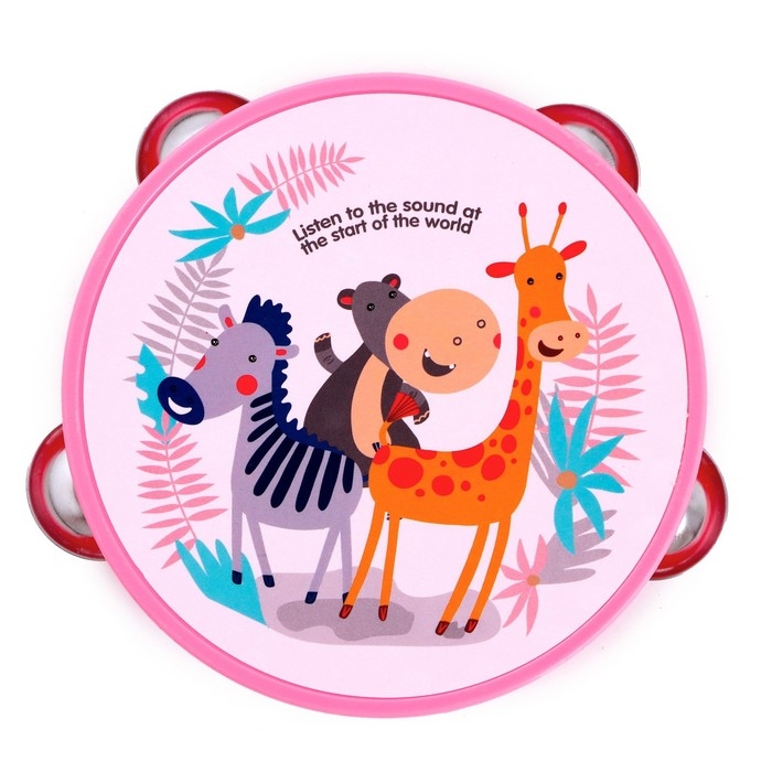 Игрушка музыкальная «Бубен. Зверята», 8 металлических бубенцов, МИКС