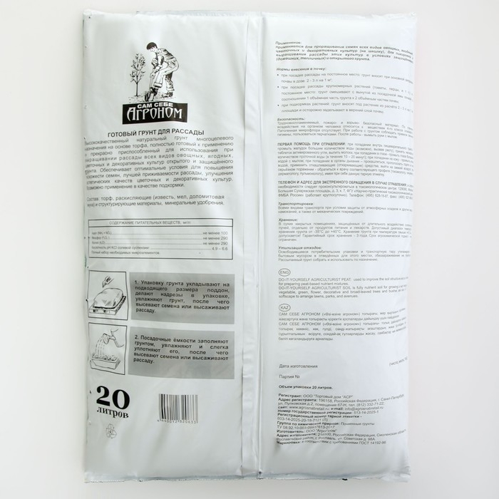 Грунт "Сам себе Агроном", для рассады, 20 л
