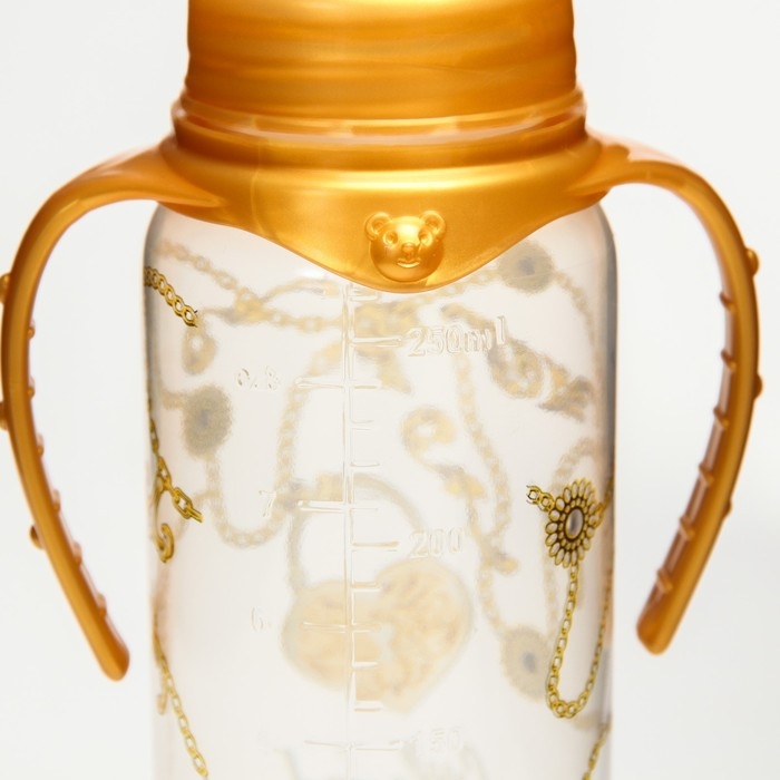 Бутылочка для кормления «Little lady», классическое горло, с ручками, 250 мл., от 3 мес., Золотая коллекция