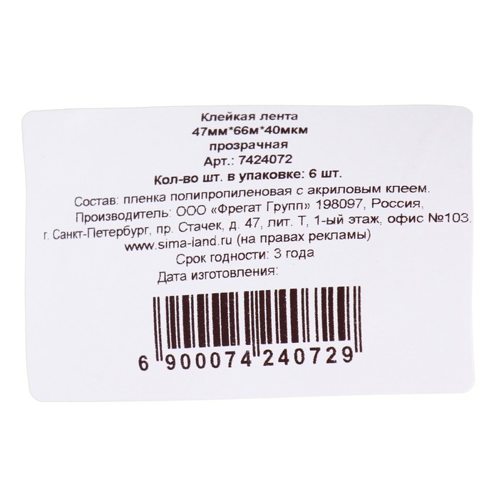 Клейкая лента "Мой выбор", прозрачная, 47 мм х 66 м, 40 мкм