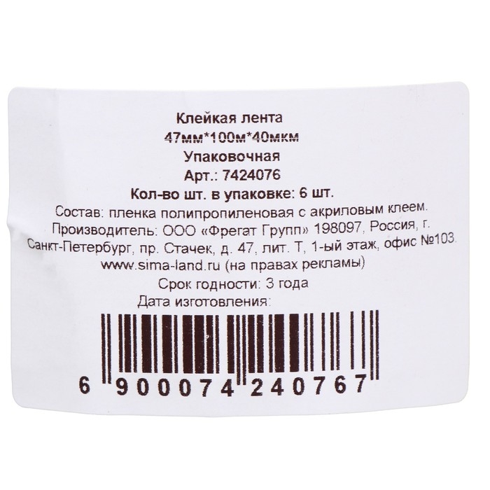 Состав: BOPP пленка, акриловый клей.