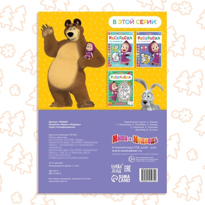 Увлекательная книжка-раскраска «Маша и Медведь» создана специально для творческого развития малышей с раннего возраста.