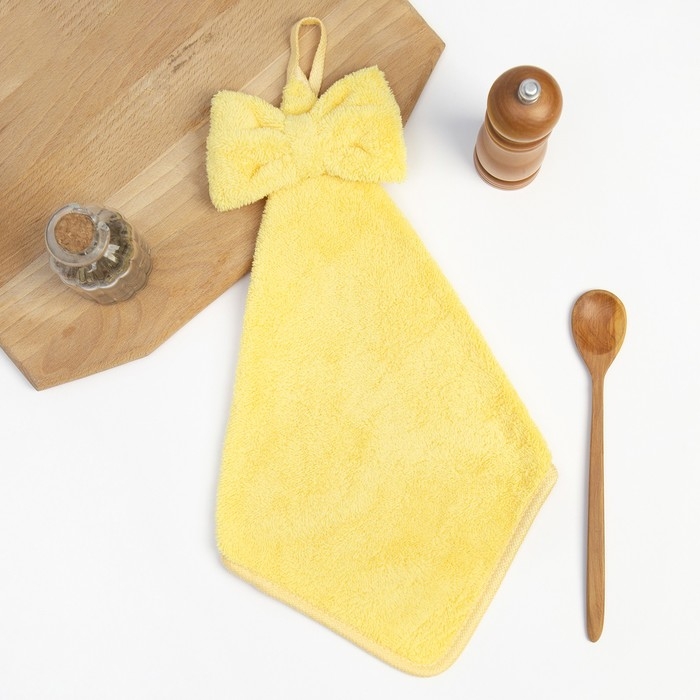 Кухонное полотенце Доляна "Бантик"цв.желтый 28х40 см, микрофибра, 100% п/э