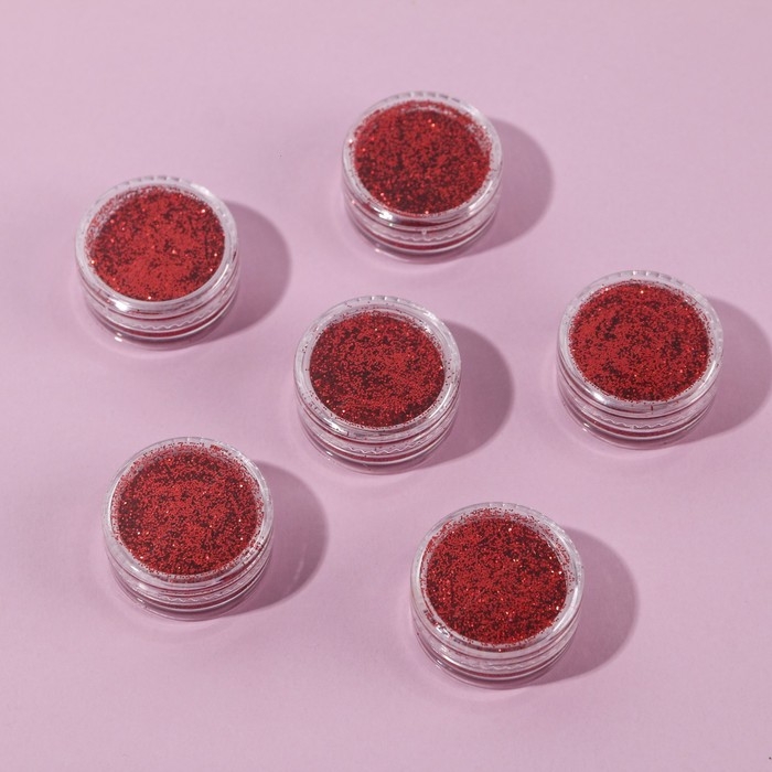 Набор блесток для декора, мелкий помол, цвет алый, 6 штук