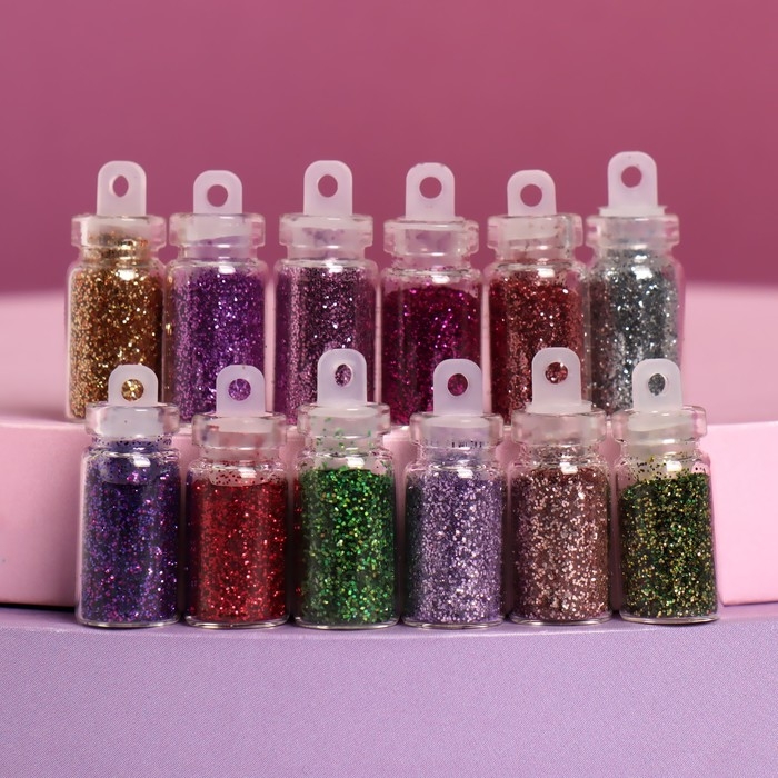 Блёстки для декора ногтей «Блистай», 12 бутылочек, мелкие, разноцветные