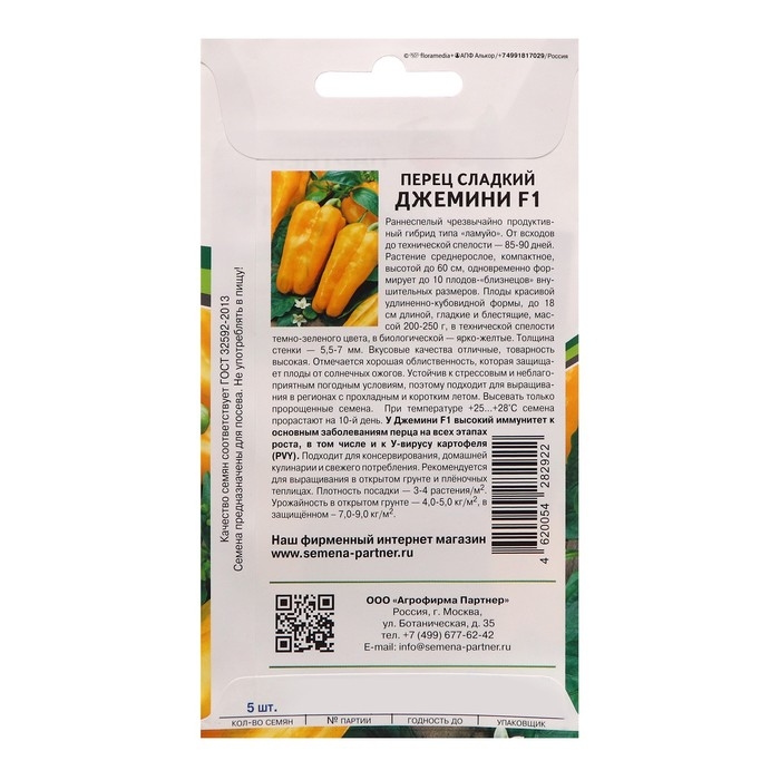 Семена перец сладкий "Джемини" F1, 5 шт.