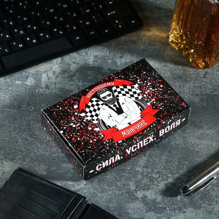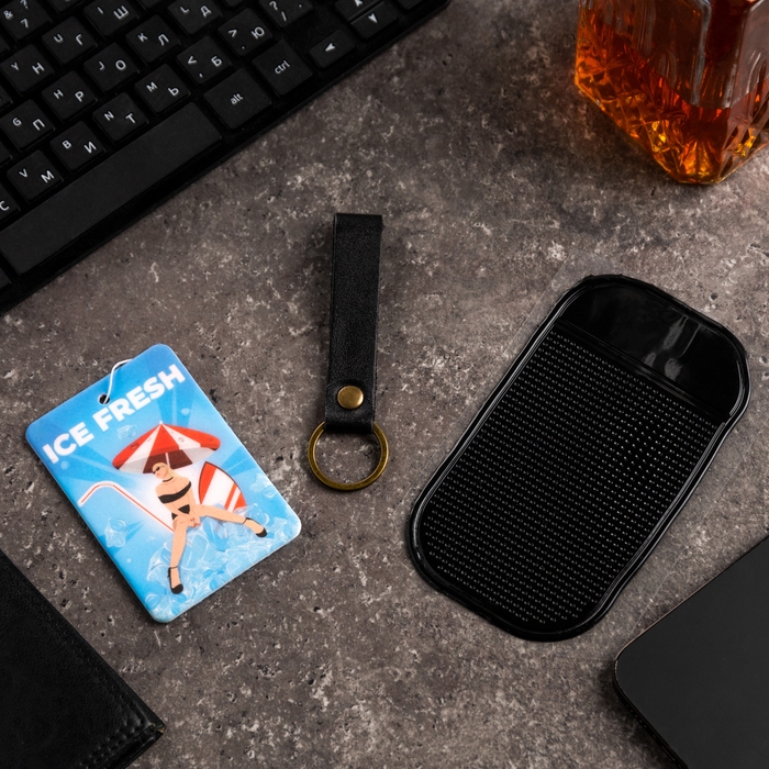 Подарочный набор "Настоящему мужчине" для автомобилиста, набор автоаксессуаров: коврик для телефона, ароматизатор, брелок