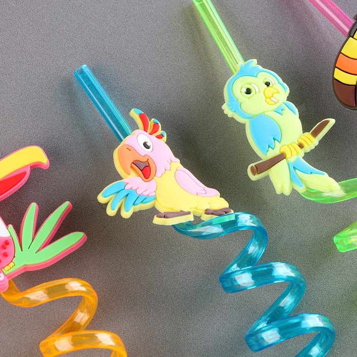 Трубочки для коктейля «Птички» набор 4 шт, цвет МИКС