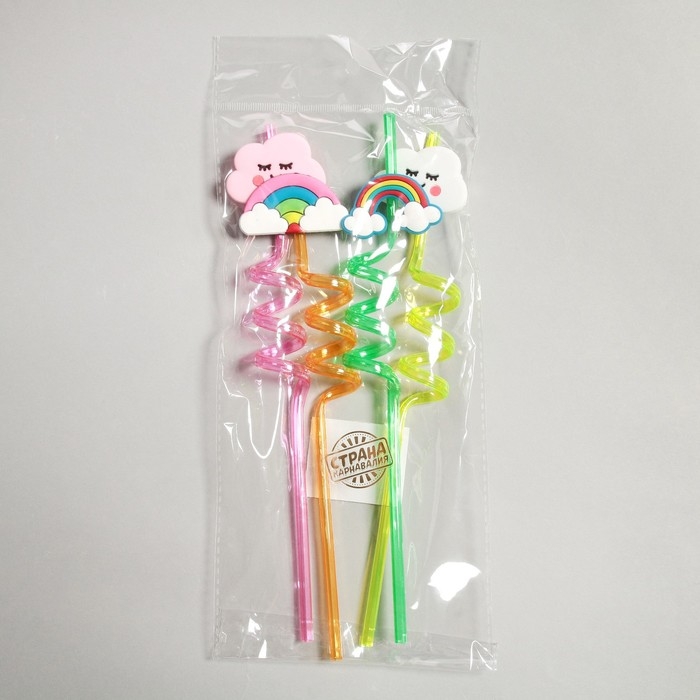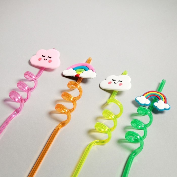 Трубочки для коктейля «Облака и радуга» набор 4 шт, цвет МИКС