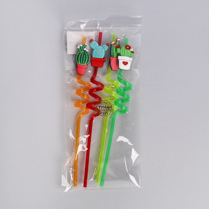 Трубочки для коктейля «Кактусы» набор 4 шт, цвет МИКС