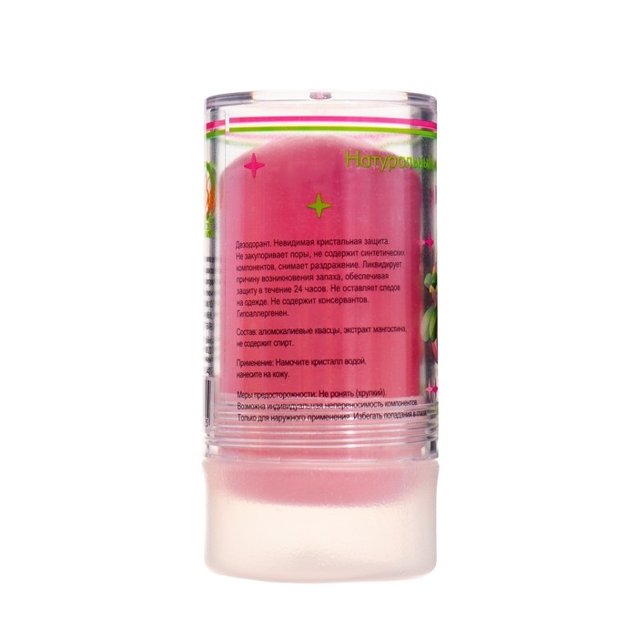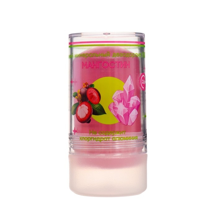 Минеральный дезодорант «Мангостин». Представляет собой натуральный кристалл алунит, обладающий высокой антибактериальной активностью. Предотвращает появление пота и неприятного запаха в течение всего дня. Заживляет ранки и увлажняет.