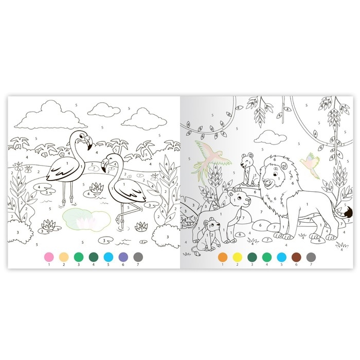 Раскраска по номерам «Дикие животные», 16 стр., с наклейками, 12 картинок, 5+