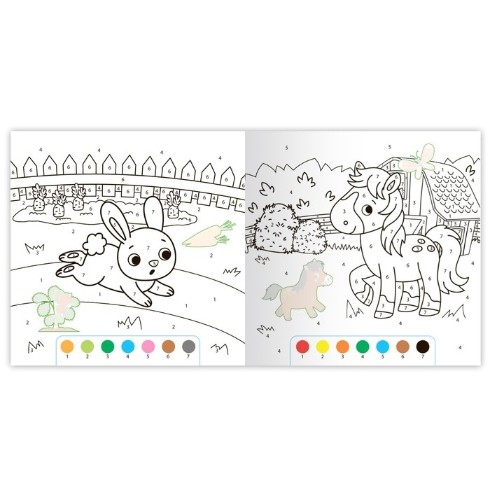 Раскраска по номерам с наклейками «Весёлая ферма», 16 стр.