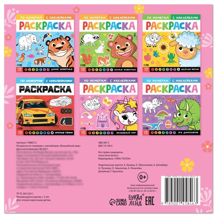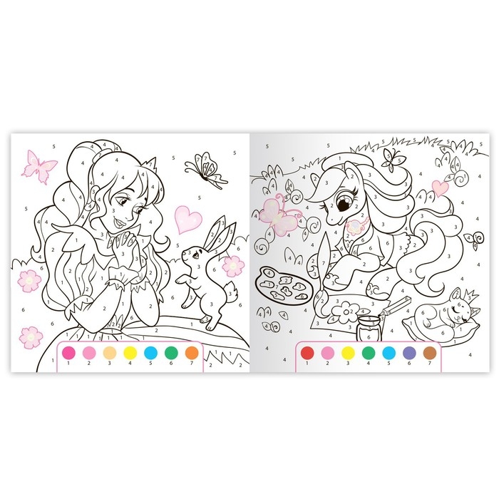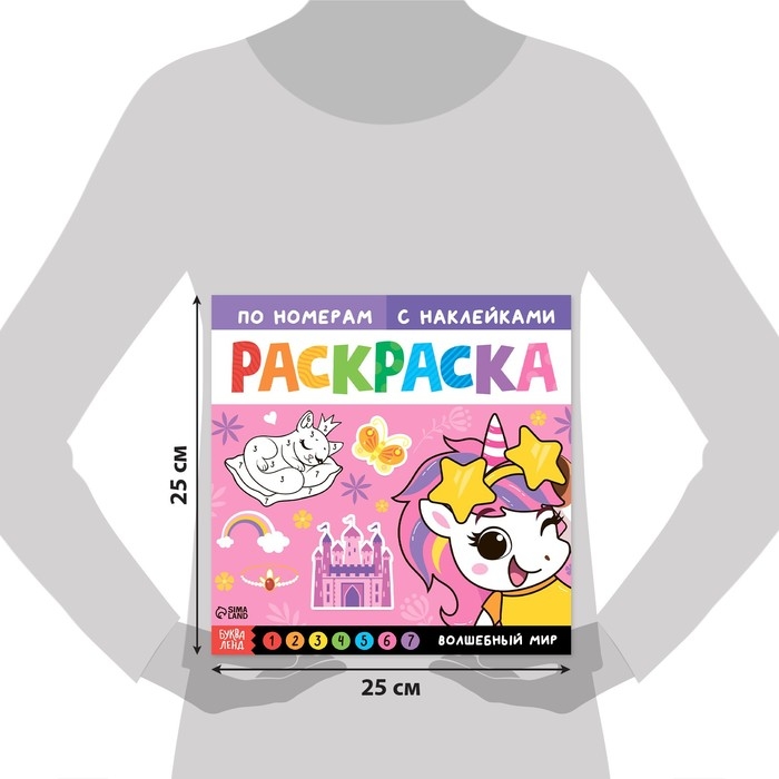 Раскраска по номерам с наклейками «Волшебный мир», 16 стр.