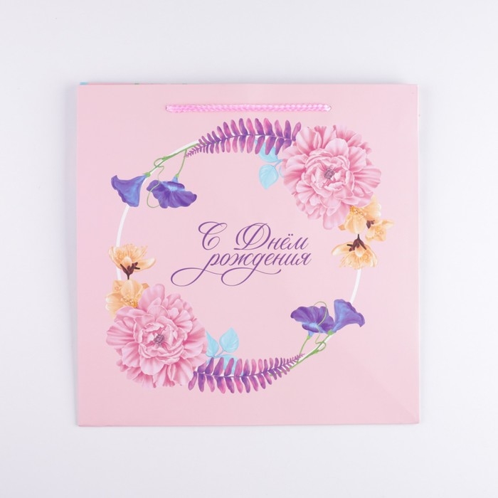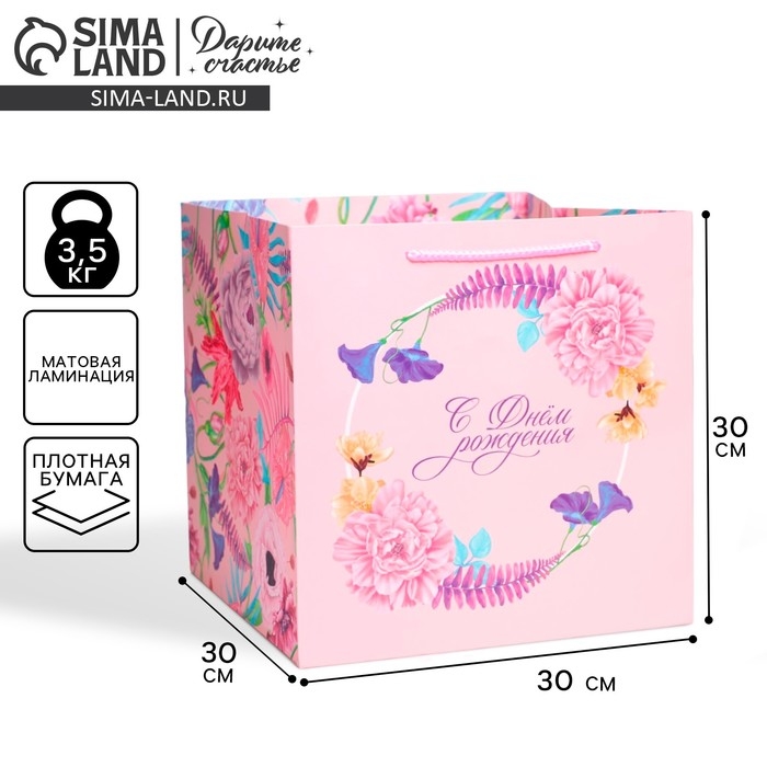 Пакет подарочный квадратный, упаковка, «С днём рождения», 30 х 30 х 30 см