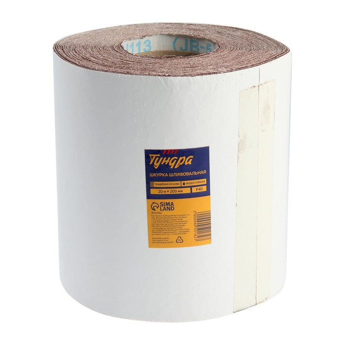 Шкурка шлифовальная в минирулонах ТУНДРА, на тканевой основе водостойкая, 200мм х 20м, Р40