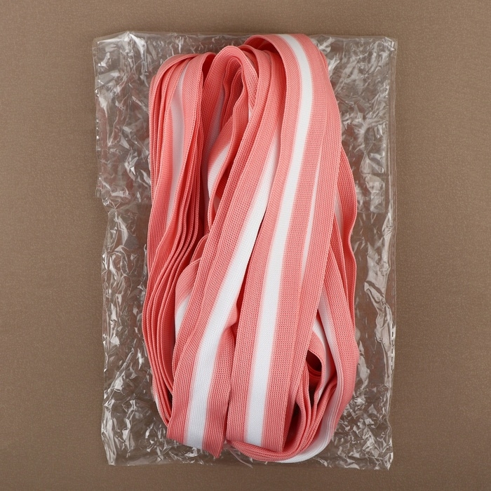 Тесьма трикотажная лампас 30 мм, 9,1 ± 0,5 м, цвет розовый/белый