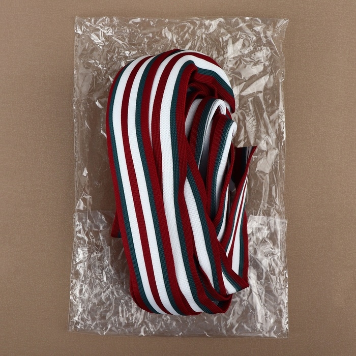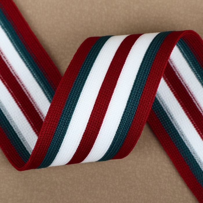 Тесьма трикотажная лампас 40 мм, 9,1 ± 0,5 м, цвет бордовый/зелёный/белый