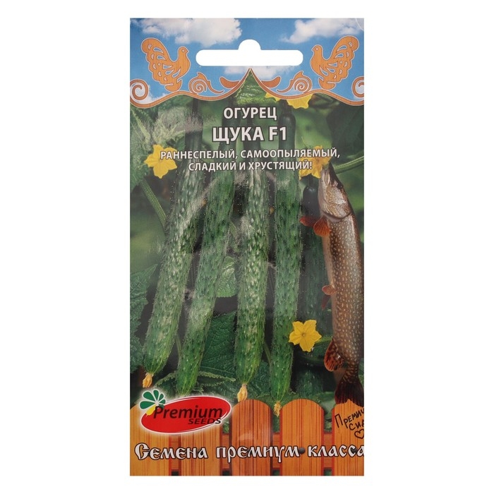 Эта щука не кусает – огурцом на стол свисает! Раннеспелый (45-48 дней от всходов до плодоношения), самоопыляемый гибрид для теплиц и открытого грунта. Растение преимущественно женского типа цветения, с короткими междоузлиями. Плоды с тонкой кожицей, хрустящие, сочные, сладкие и ароматные, долго сохраняют свои товарные качества после сбора. Гибрид прекрасно переносит перепады температуры и влажности, обладает устойчивостью к основным болезням огурца.