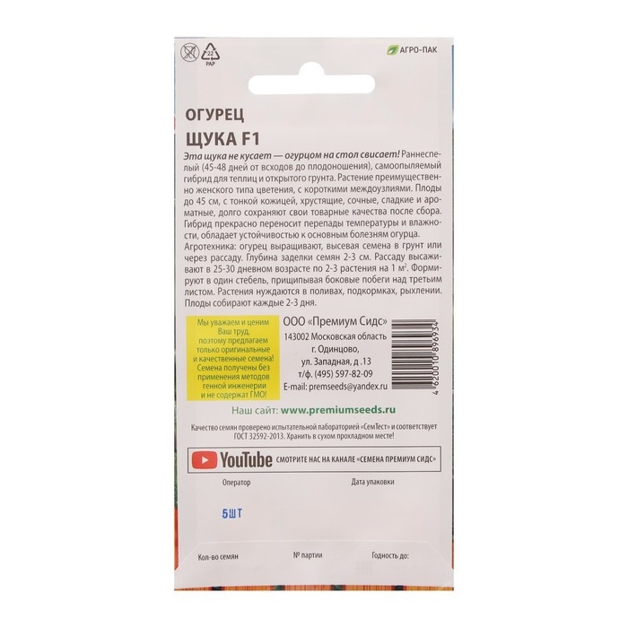 Семена Огурец Щука F1 5 шт.
