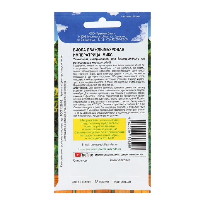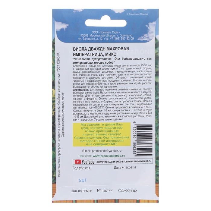 Семена цветов Виола "Императрица", 5 шт