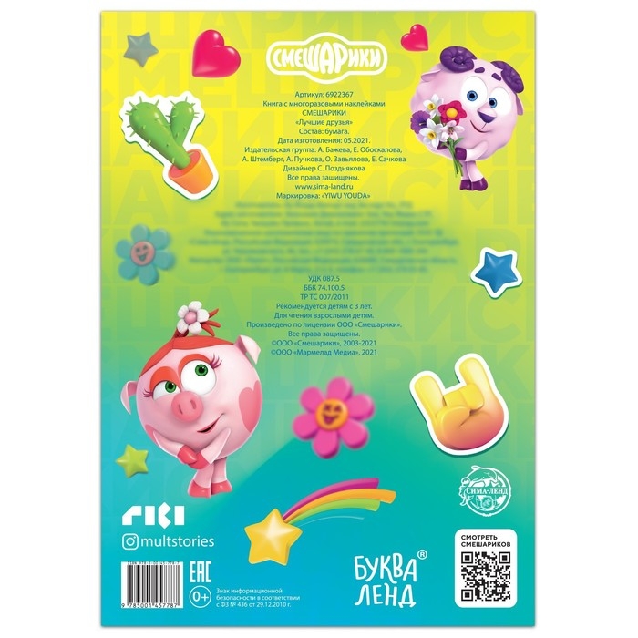 Набор наклеек «Лучшие друзья» — это возможность для ребёнка принять участие в невероятных приключениях смешариков. С помощью многоразовых наклеек можно украсить любой уголок внутри книги и помочь любимым героям в их путешествии.