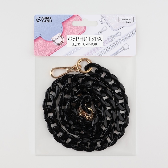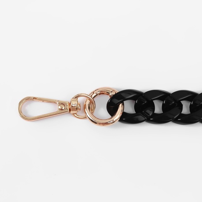 Цепочка для сумки, пластиковая, с карабинами, 15 × 21 мм, 68 см, цвет чёрный/золотой