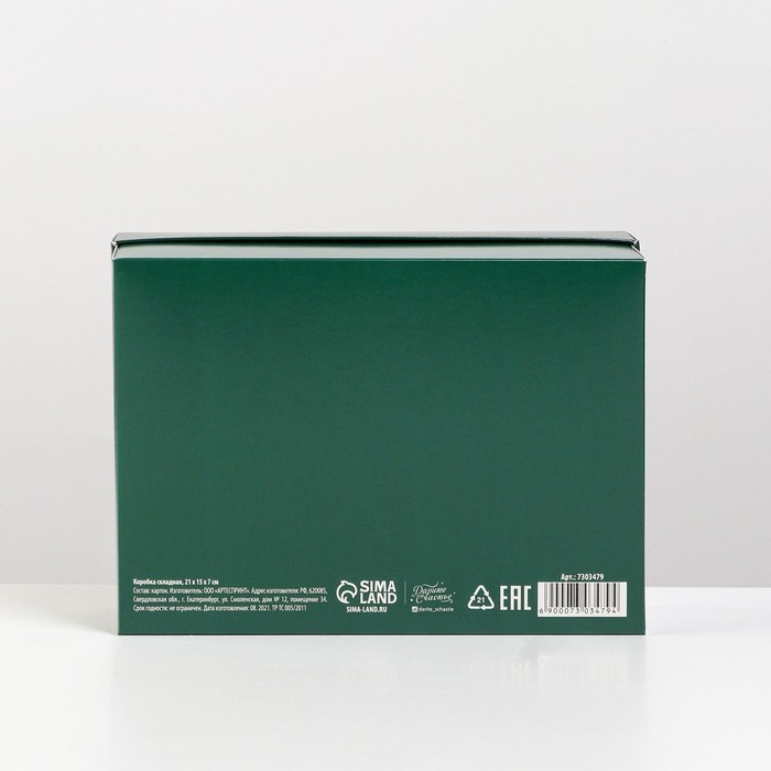 Коробка подарочная складная, упаковка, «Изумрудная», 21 х 15 х 7 см