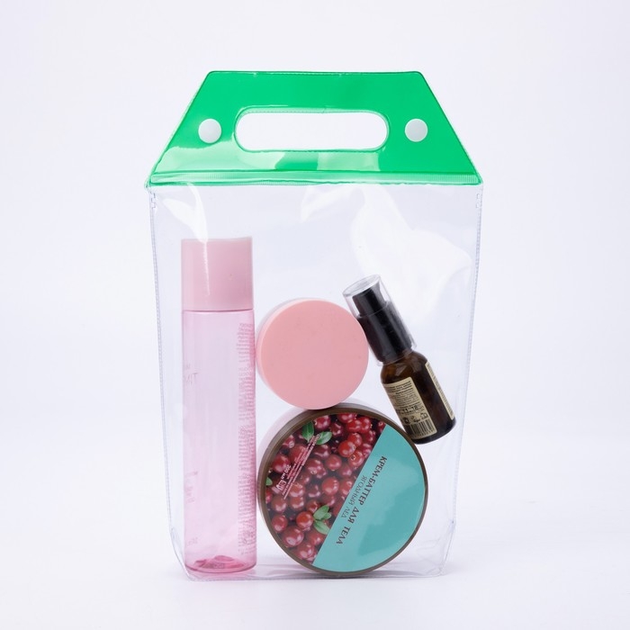 Косметичка на кнопках, цвет прозрачный/зелёный