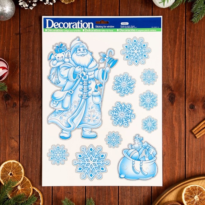 Наклейки на окна "Новогодние" снежинки, Дед Мороз, 41 х 29 см