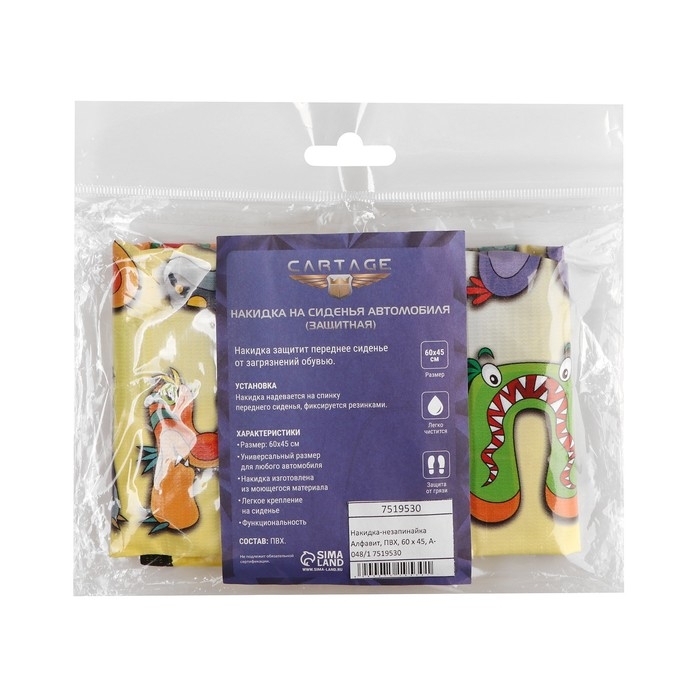 Накидка на сиденье автомобильное Cartage Алфавит, ПВХ, 60 х 45 см, европодвес