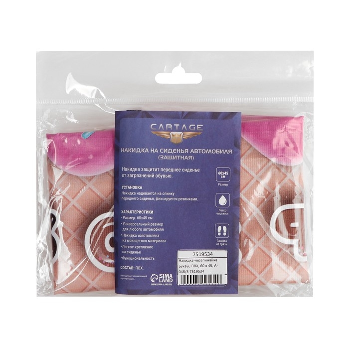 Накидка на сиденье автомобильное Cartage Буквы, ПВХ, 60 х 45 см, европодвес