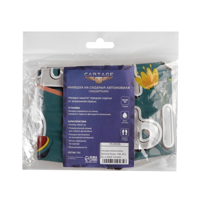 Накидка на сиденье автомобильное Cartage Веселые буквы, ПВХ, 60х45 см, европодвес