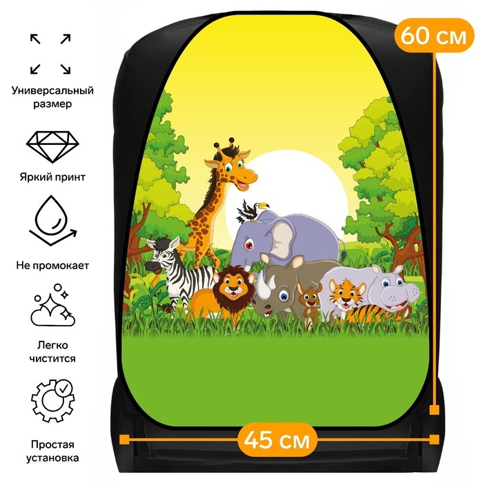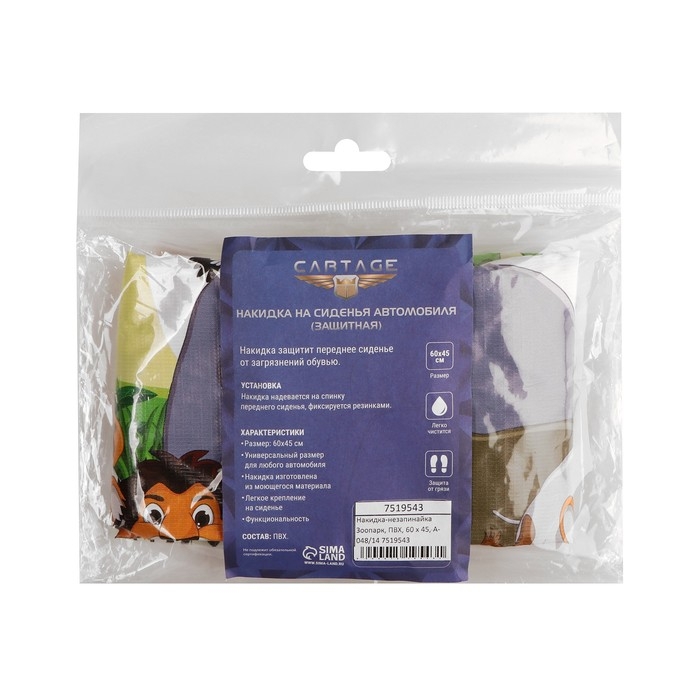 Накидка на сиденье автомобильное Cartage Зоопарк, ПВХ, 60 х 45 см, европодвес