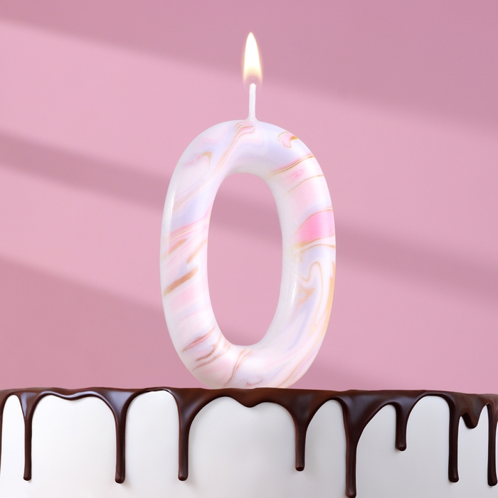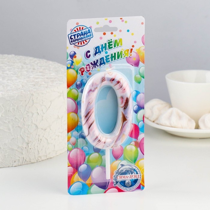 Свеча в торт "Белый мрамор", цифра "0", ГИГАНТ, 9 см