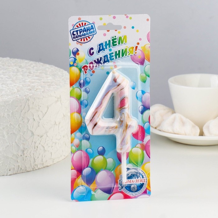 Свеча в торт "Белый мрамор", цифра "4", ГИГАНТ, 9 см