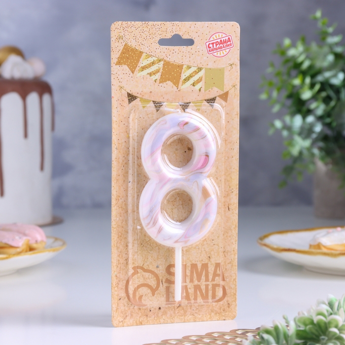 Свеча в торт "Белый мрамор", цифра "8", ГИГАНТ, 9 см