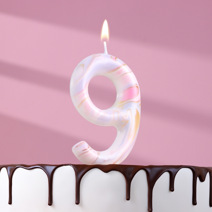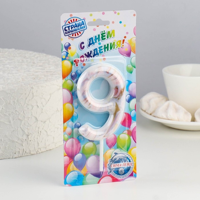 Свеча в торт "Белый мрамор", цифра "9", ГИГАНТ, 9 см