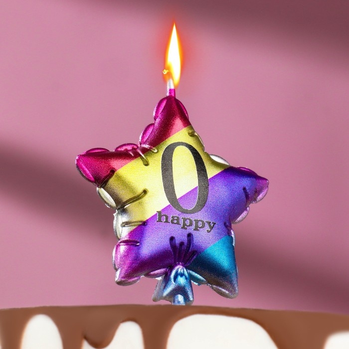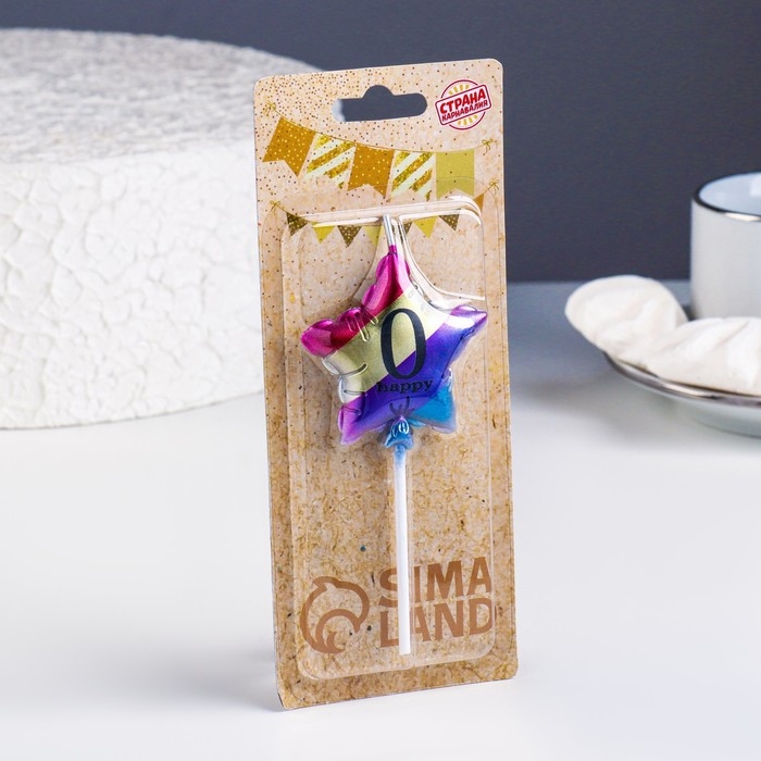 Свеча в торт "Воздушный шарик. Звезда", цифра "0", 5,5 см, разноцветная
